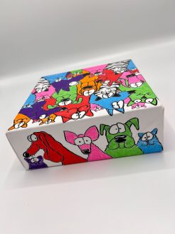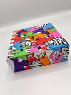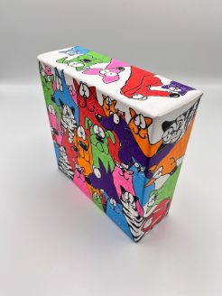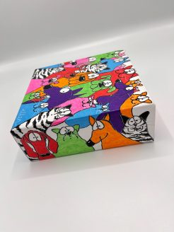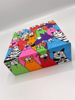 Bring the cheerful chaos of Ellen Moorman’s cat/dog world into your home with this unique painting. Perfect for children’s rooms, play corners, or any space that could use a playful and colorful touch. Add this work of art to your collection and enjoy the vibrant energy and joy it radiates every day.