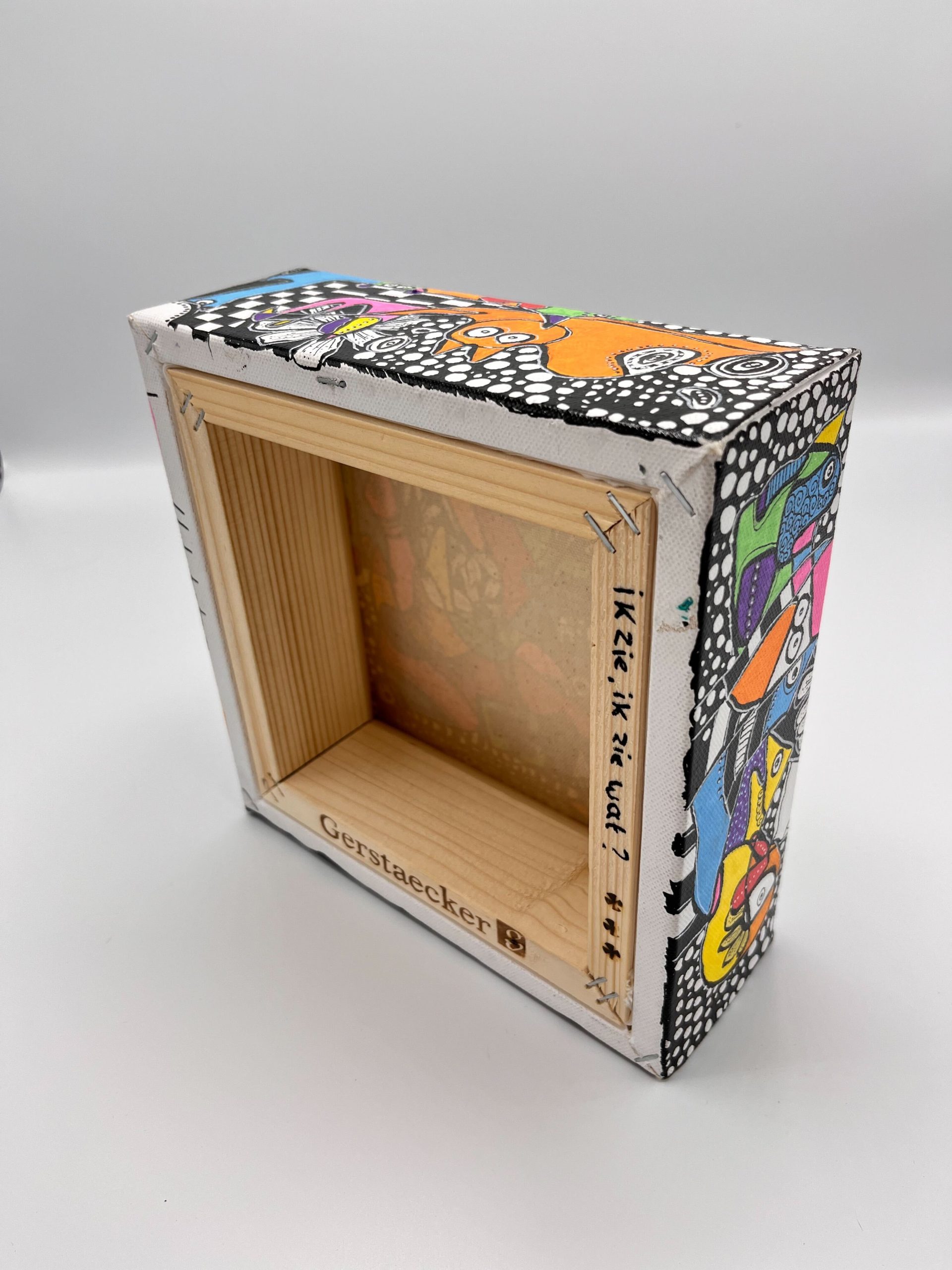 Moorman’s style is a fusion of cubist and surreal elements, resulting in a playful yet complex composition. Every detail of the painting invites discovery and interpretation, making it a real eye-catcher in any room.