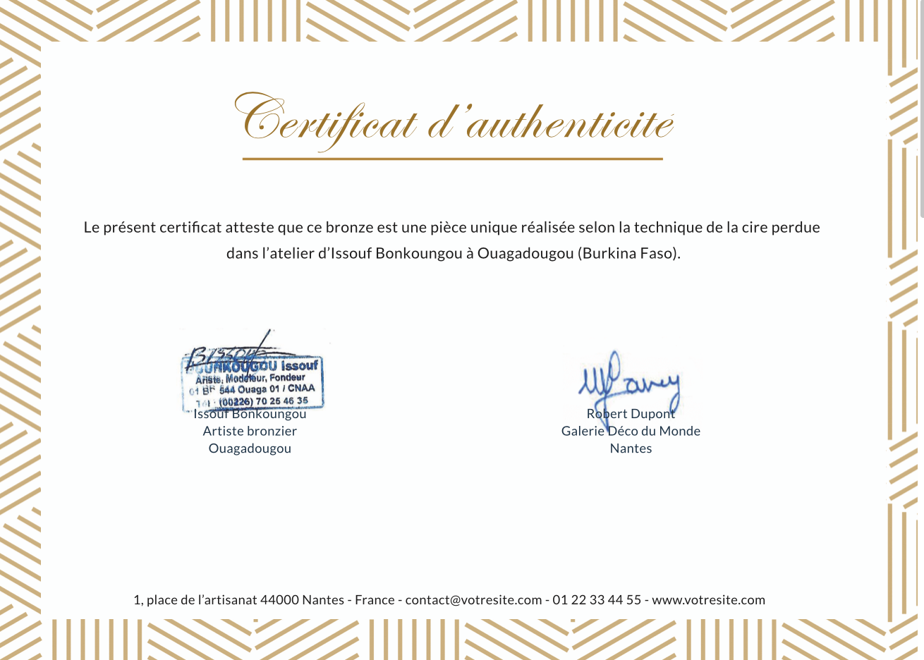 Recycled bronze statue made using the lost wax technique. This model is approximately 16 cm. The bronzes are distinguished by the quality of their finish and the human values they embody.