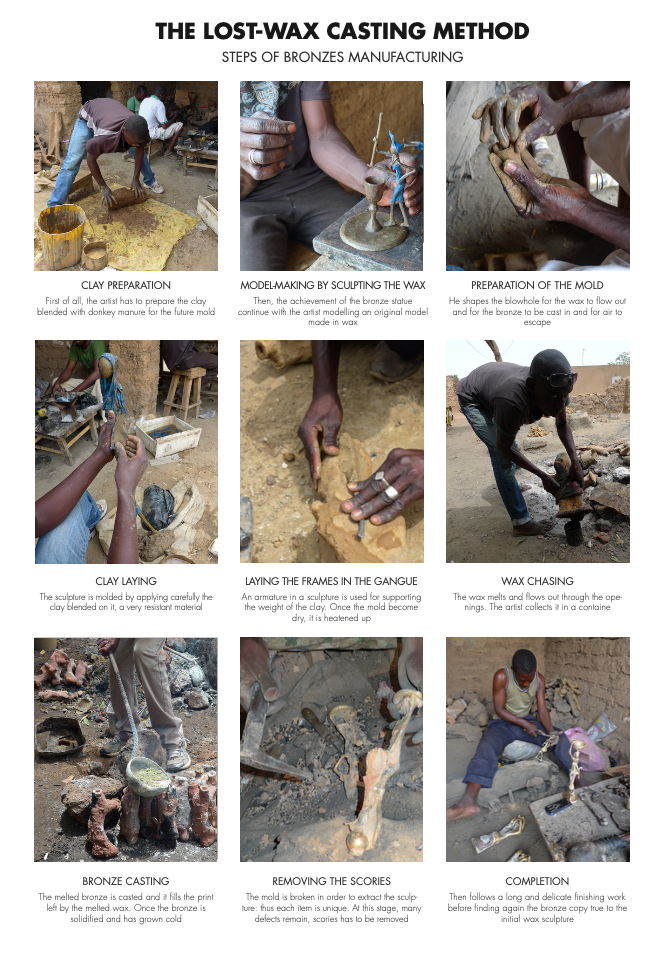 This is followed by a long and delicate finishing work before the bronze copy that is faithful to the original wax statue is found again.