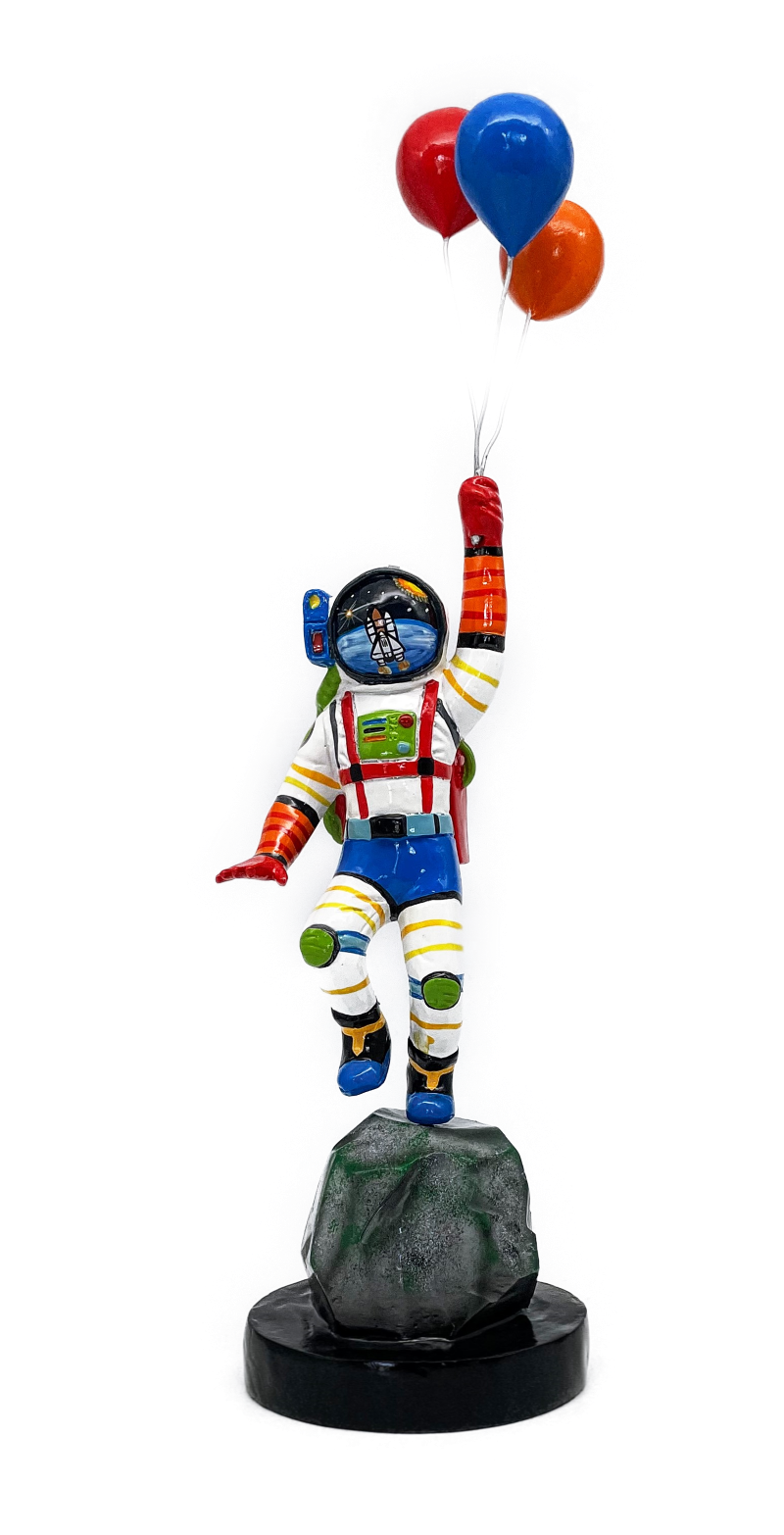Standing astronaut with colorful balloons. Designed by Art24 Design Group.