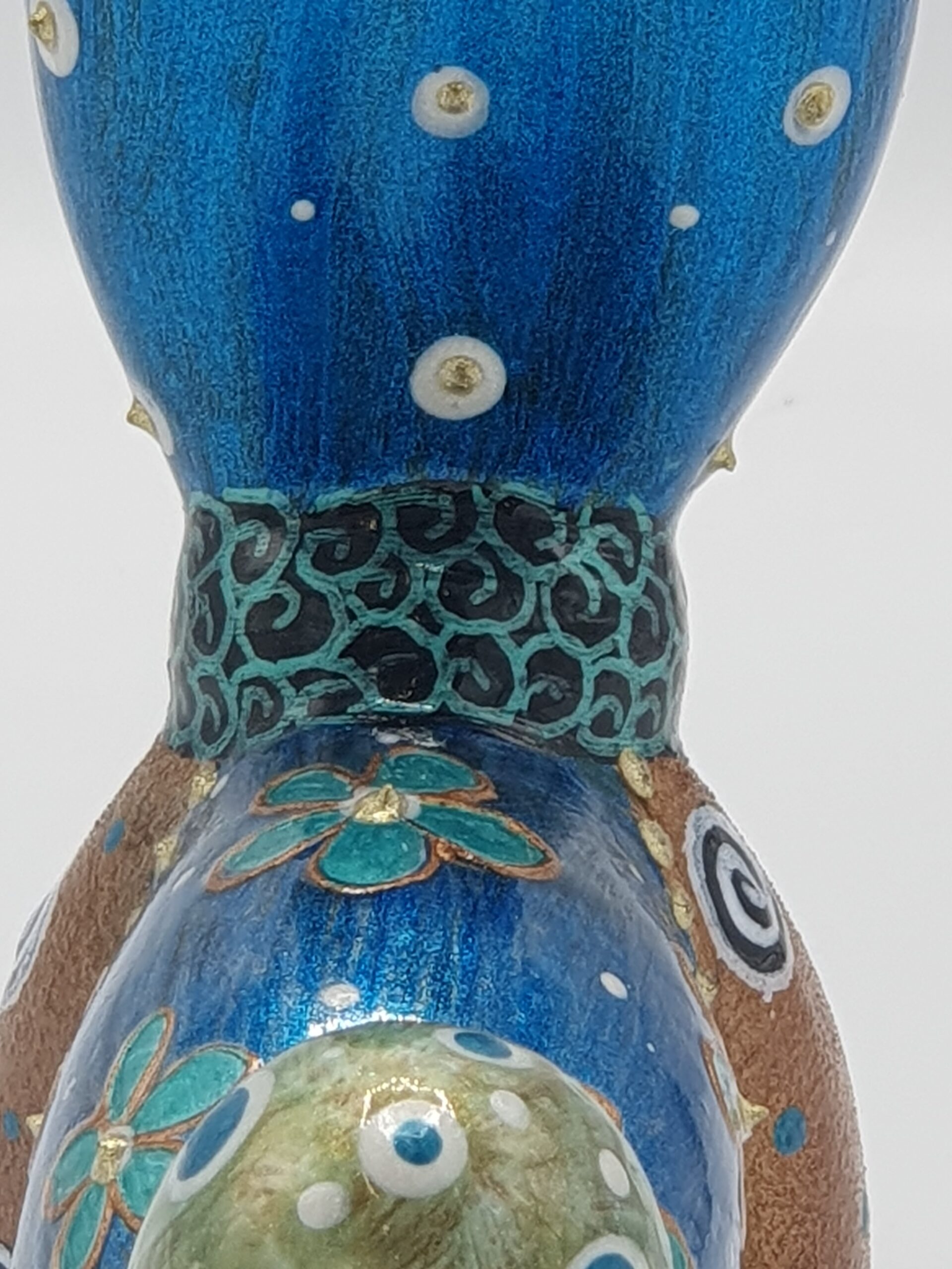 Breng een vleugje artistieke flair in je interieur met dit unieke keramiek hond sculptuur van Urmila Massaar. Dit kunstwerk is een opvallende mix van geometrische patronen en levendige kleuren, waaronder blauw, brons, bruin, goud, groen, turquoise en zwart. Het sculptuur heeft een speelse en abstracte uitstraling, perfect voor liefhebbers van moderne kunst. Met een afmeting van 17 × 7 × 12 cm is het een compact, maar intrigerend kunstwerk dat gemakkelijk een plekje vindt in elk interieur. Het lichte gewicht van circa 0,2 kg maakt het eenvoudig te verplaatsen en te stylen op verschillende plekken in huis. Dit beeld is ideaal als cadeau voor kunstliefhebbers of als een unieke toevoeging aan je eigen collectie.