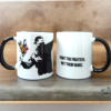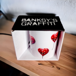 The unmistakable design adorns the front and back of this iconic mug, dedicated to fans of the most famous and talked about street artist.