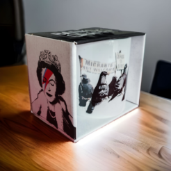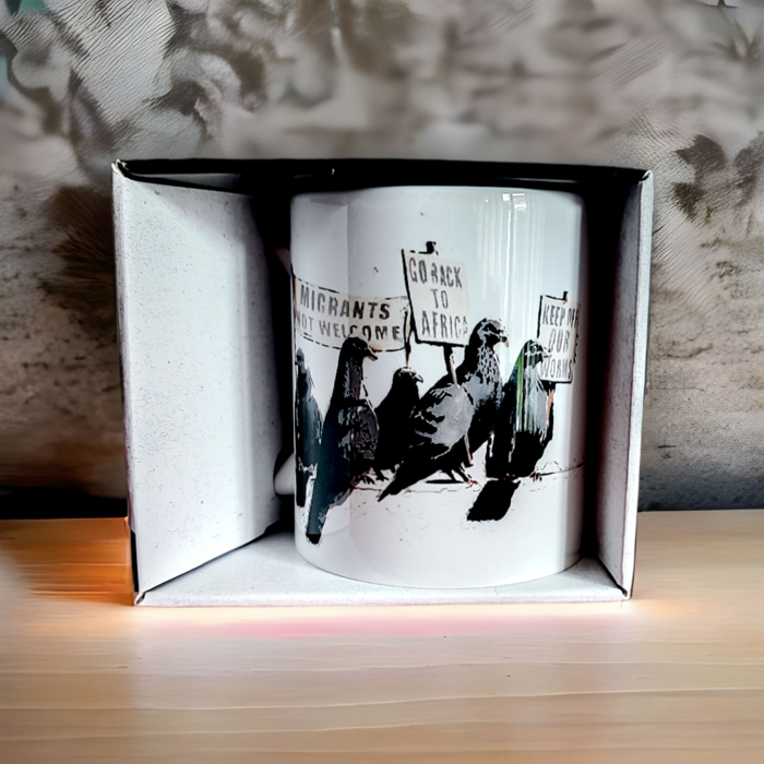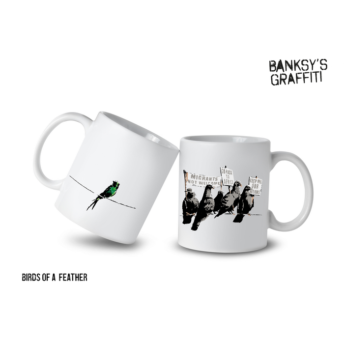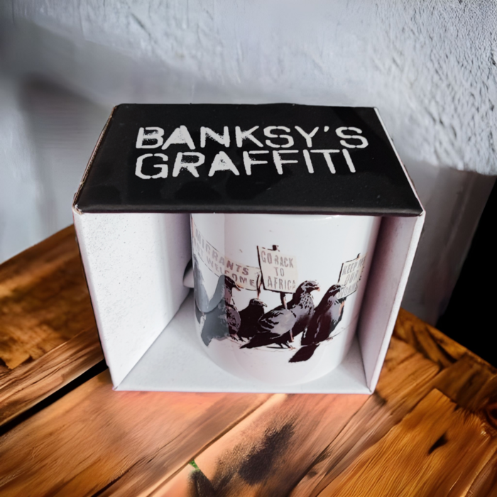 The unmistakable design adorns the front and back of this iconic mug, dedicated to fans of the most famous and talked about street artist.