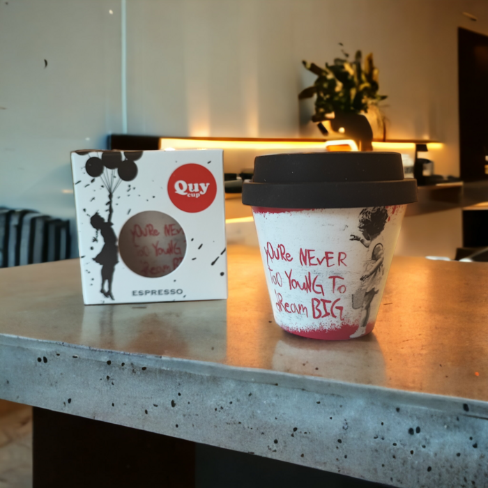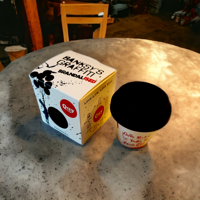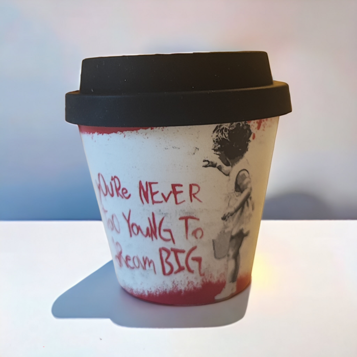 Banksy’s Graffiti Espresso Cups are environmentally friendly because they are infinitely recyclable. This means that together we must fight against disposable waste.