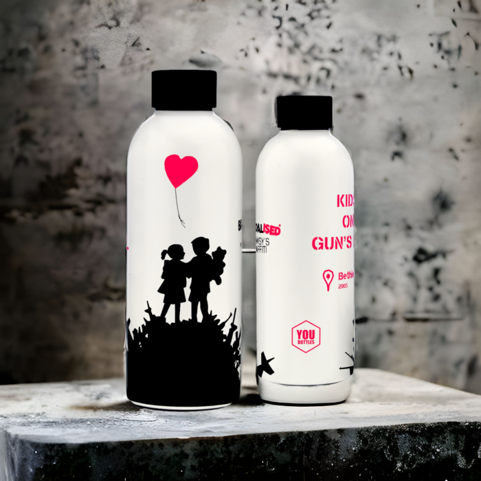 In collaboration with “You Bottles” it is a bottle made of stainless steel, the most suitable material for food use. The steel used is resistant and ensures long-term use, it does not alter flavors and odors, it offers 12 hours of thermal maintenance for hot drinks and 24 hours for cold drinks.