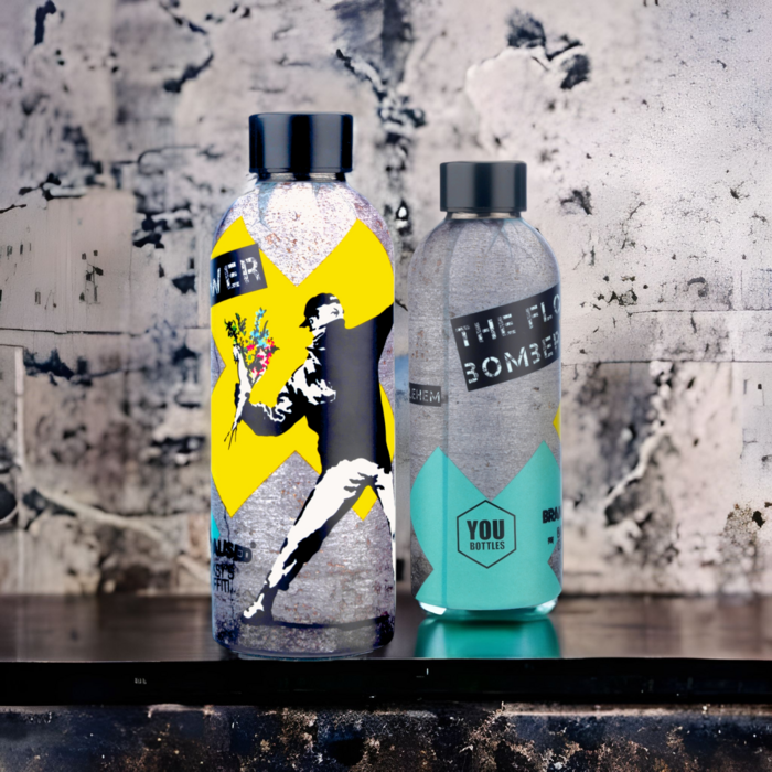 In collaboration with “You Bottles” it is a bottle made of stainless steel, the most suitable material for food use. The steel used is resistant and ensures long-term use, it does not alter flavors and odors, it offers 12 hours of thermal maintenance for hot drinks and 24 hours for cold drinks.