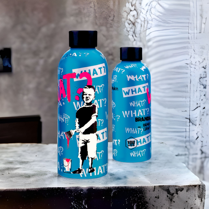 In collaboration with “You Bottles”, it is a bottle made of stainless steel, the most suitable material for food use. The steel used is resistant and ensures long-term use, it does not alter flavors and odors, it offers 12 hours of thermal maintenance for hot drinks and 24 hours for cold drinks.