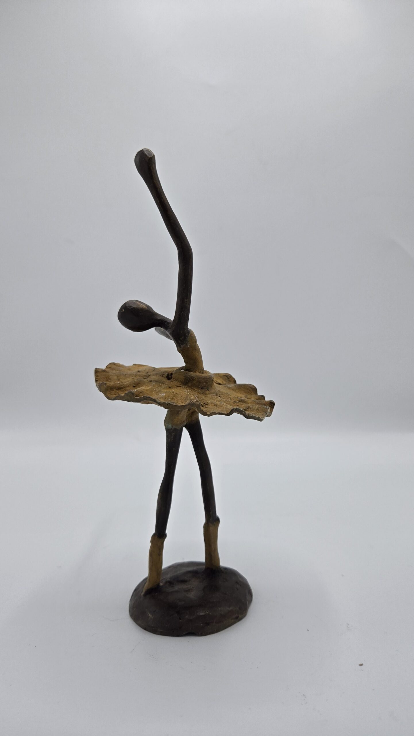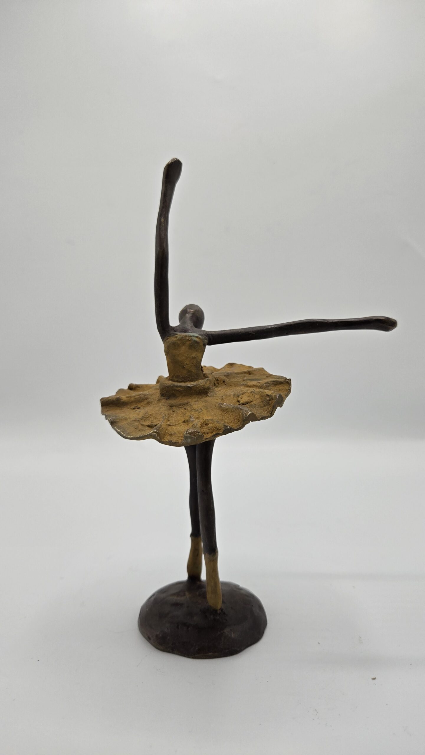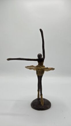 Dit stijlvolle bronzen beeld van een ballerina vangt de sierlijkheid en expressie van dans in een tijdloos kunstwerk. Met een hoogte van circa 20 cm straalt deze vrouwfiguur kracht, elegantie en balans uit. De ranke lijnen van het lichaam en de expressieve houding geven een dynamische indruk, alsof de ballerina midden in haar choreografie bevroren is.