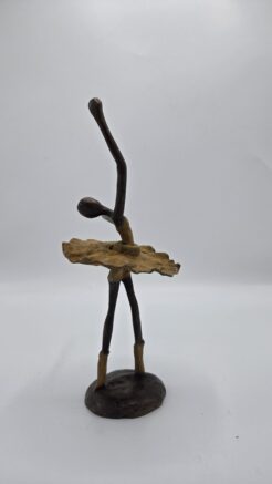 Het beeld is met vakmanschap gegoten uit brons en afgewerkt met een levendig oker patina op het lijfje, rokje en de balletschoentjes. Deze diepe oker tint staat prachtig met het warme, donkere brons van het lichaam. De combinatie van kleuren versterkt de beweging en geeft het kunstwerk een eigentijdse uitstraling, terwijl het toch een klassiek karakter behoudt.
