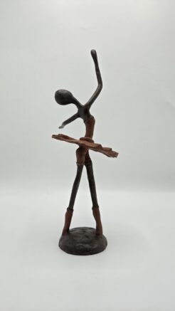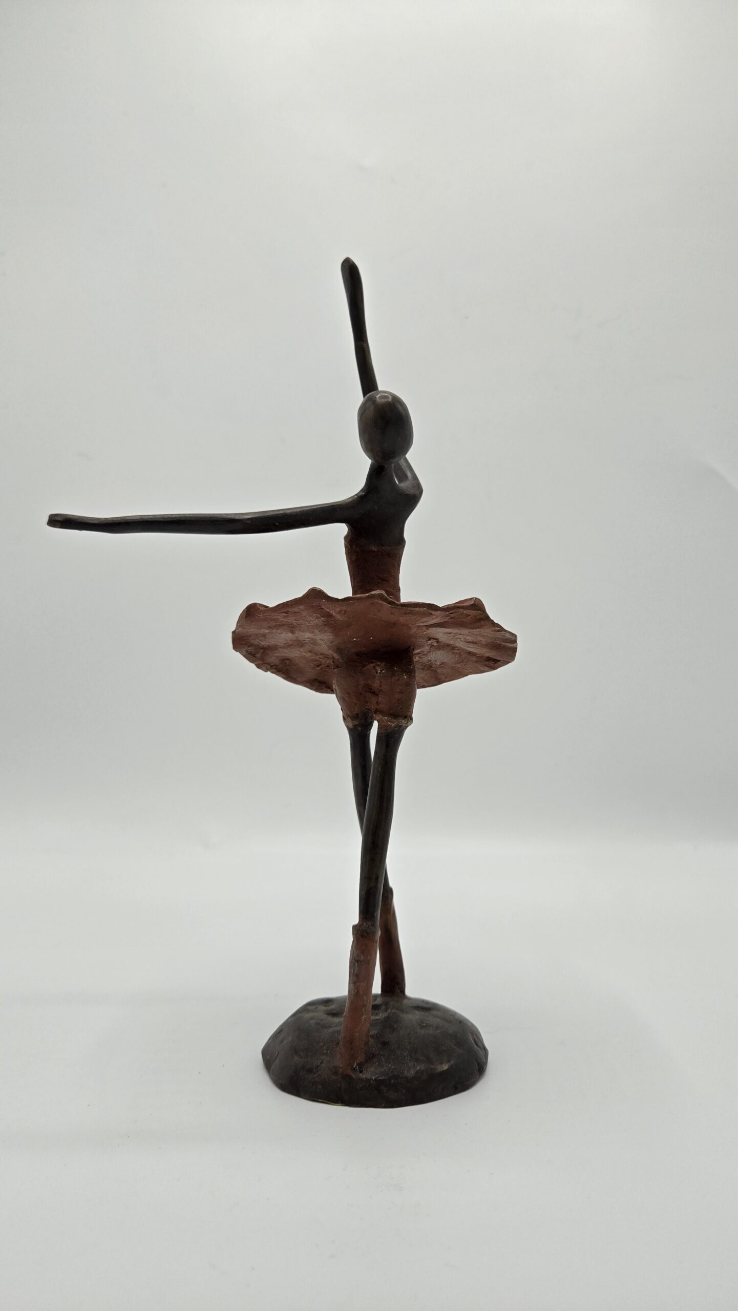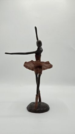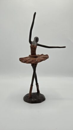 Het beeld is met vakmanschap gegoten uit brons en afgewerkt met een levendig roodbruin patina op het lijfje, rokje en de balletschoentjes. Deze diepe roodbruine tint staat prachtig met het warme, donkere brons van het lichaam. De combinatie van kleuren versterkt de beweging en geeft het kunstwerk een eigentijdse uitstraling, terwijl het toch een klassiek karakter behoudt.