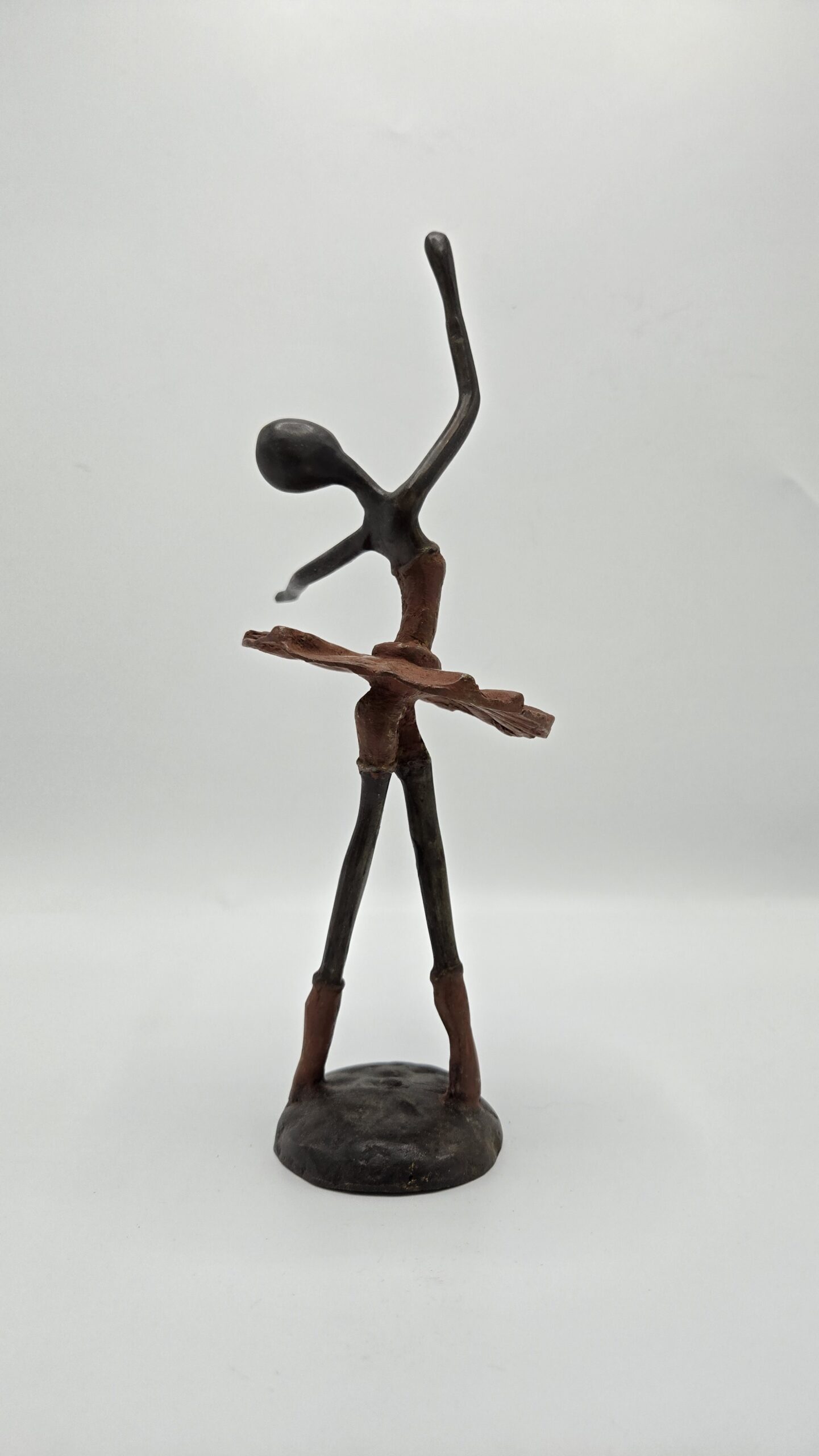 Dit stijlvolle bronzen beeld van een ballerina vangt de sierlijkheid en expressie van dans in een tijdloos kunstwerk. Met een hoogte van circa 25 cm straalt deze vrouwfiguur kracht, elegantie en balans uit. De ranke lijnen van het lichaam en de expressieve houding geven een dynamische indruk, alsof de ballerina midden in haar choreografie bevroren is.