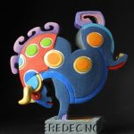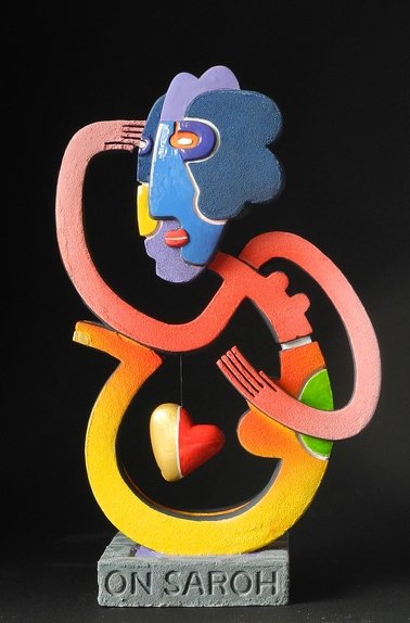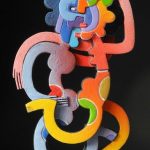 His work is vigorous, powerful, original and innovative. The confrontation between a sculpture or a canvas and Van Dommelen evokes a powerful sensation, fed by the paradoxical tension between an almost primitive language of shapes and clearly referring to age-old art forms conveyed in a dynamic, vibrating and very modern colour scheme.