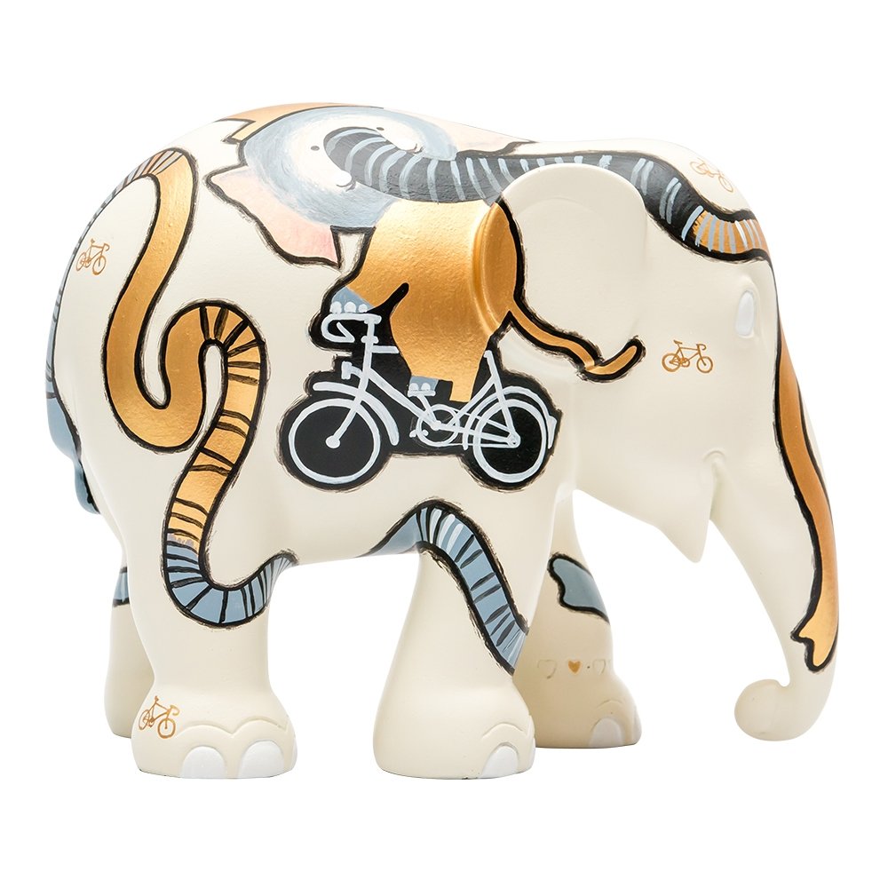 It’s a ‘bicycle elephant’ with its trunk in the wind. The title of the elephant is ‘Elefantino’ a reference to the nickname of famous cyclist Marco Pantani, thus making a link between elephants and bicycles.