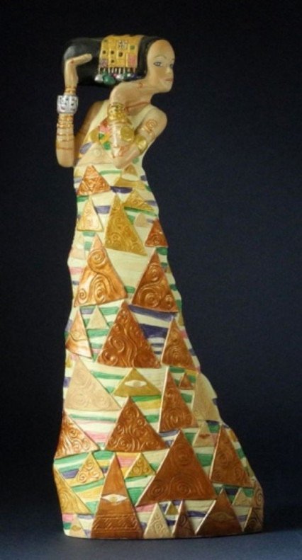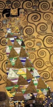 Klimt himself, a man of few words, later called this image simply ‘the dancer’. It could be though that this geometrical ornamented portrayal has a logical connection with ‘The Fulfilment’, which also forms a part of a mocsaic design in the ‘Palais Stocket’ in Brussels.