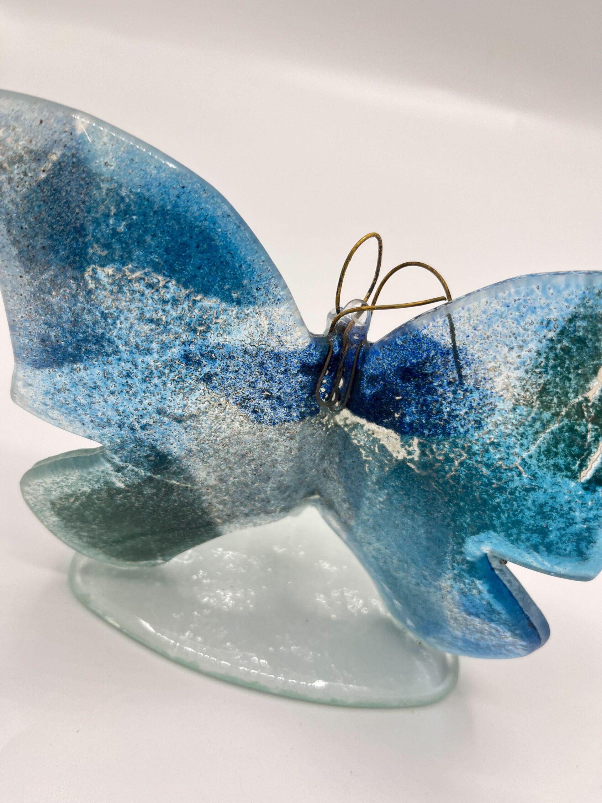 Bring the tranquility of the sea into your home with this elegant glass butterfly. Measuring 15 cm, this work of art is a subtle ode to the beauty of nature and the power of colour.