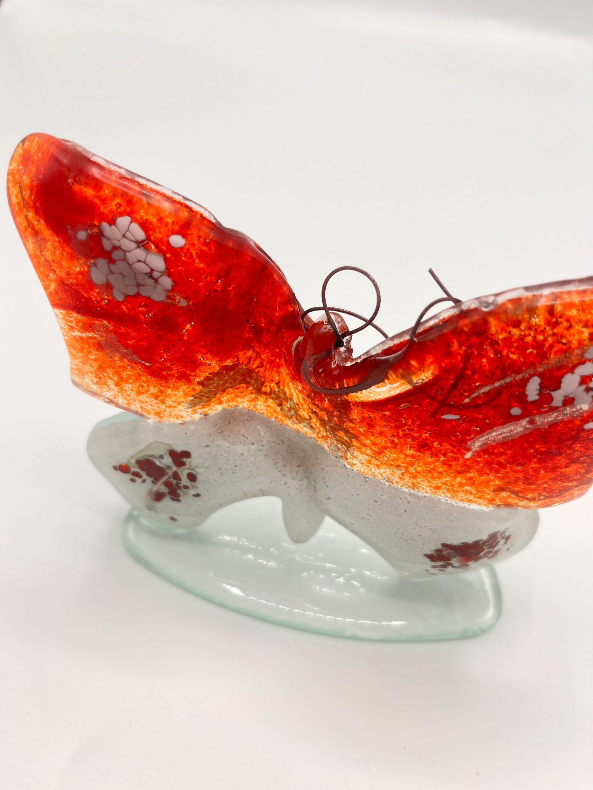 Capture the power of colour and symbolism with this handmade glass butterfly. At 12cm, this enchanting object is small in size but grand in appearance.