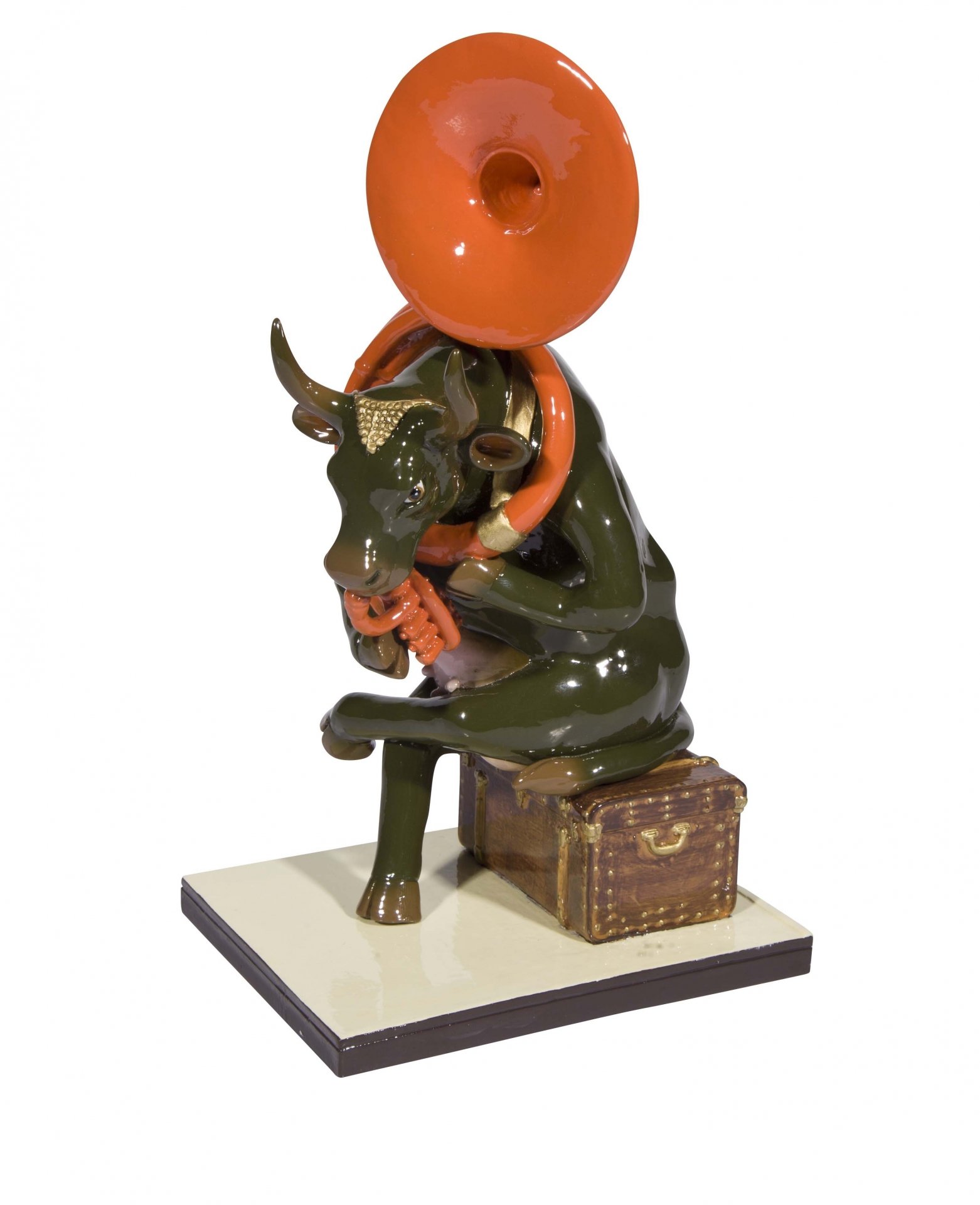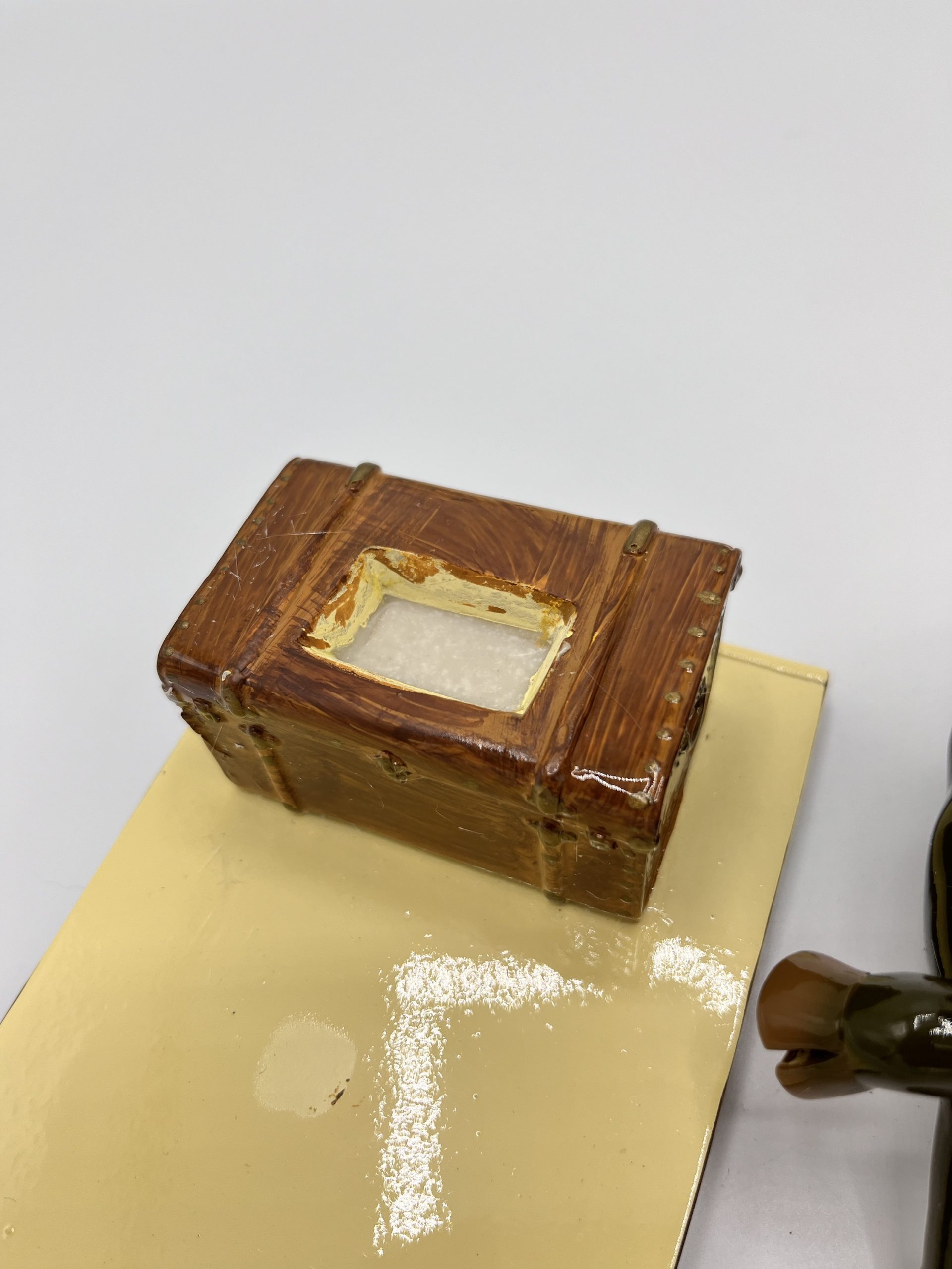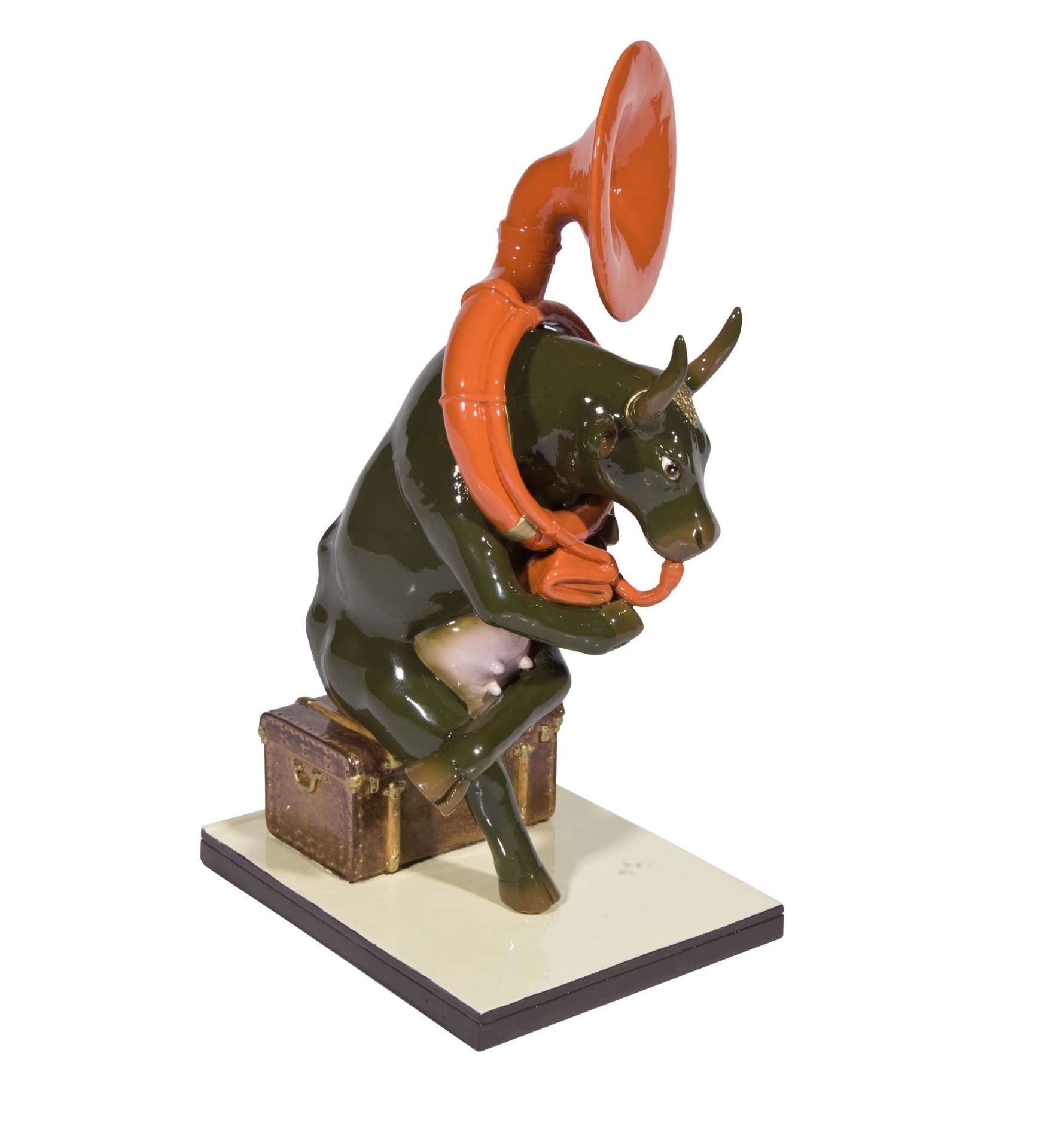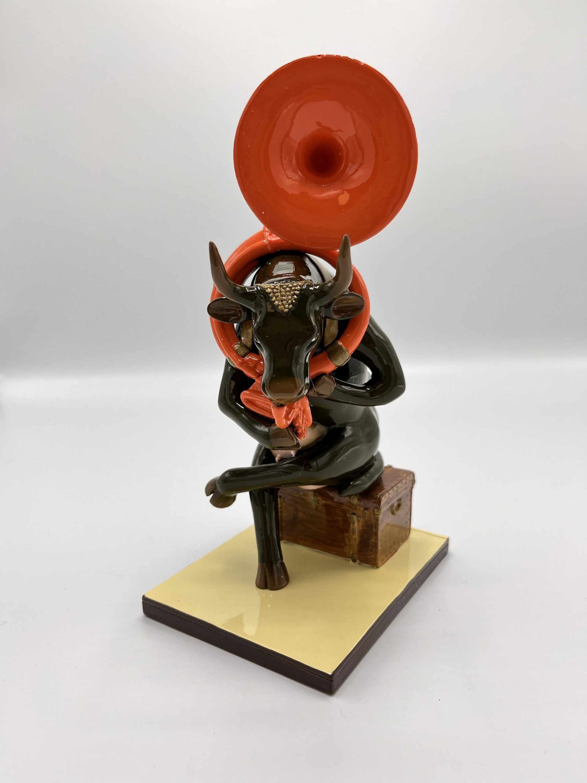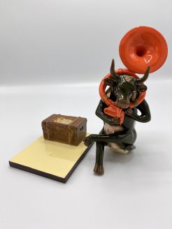 Unfortunately, this cow is no longer attached to her seat, but you can still put her on it without this being visible. This can still be glued if necessary.