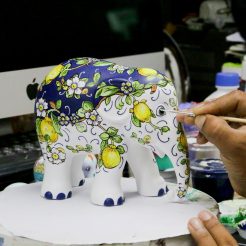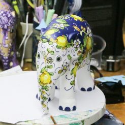 The “La Vita è Bella” ceramic elephant statue by 22 Ceramics Club captures the serene and blissful essence of an Italian summer day. This beautifully crafted ceramic white elephant transports you to a picturesque porch in Italy, where the warm sun shines down on a landscape dotted with flowering lemon trees. The refreshing ambiance and the beauty of the outdoors are artistically rendered on this ceramic elephant, making it a perfect piece for any collection of ceramic elephants figurines.