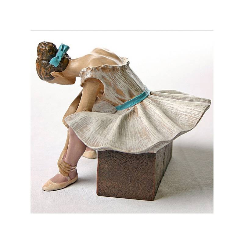 Degas developed an interest in ballet at an early age and in 1872 he made his first studies of ballet dancers. He avoided the true drama, the performance itself. This distant approach seems a reflection of Degas’ own life. When one of his favourite models went to New York, the apparently uninterested bachelor followed her, sailing on the next boat only to return to France never having left the ship, exclaiming: ‘What more can we do than to show that one is able to follow a lady from Paris to New York?
