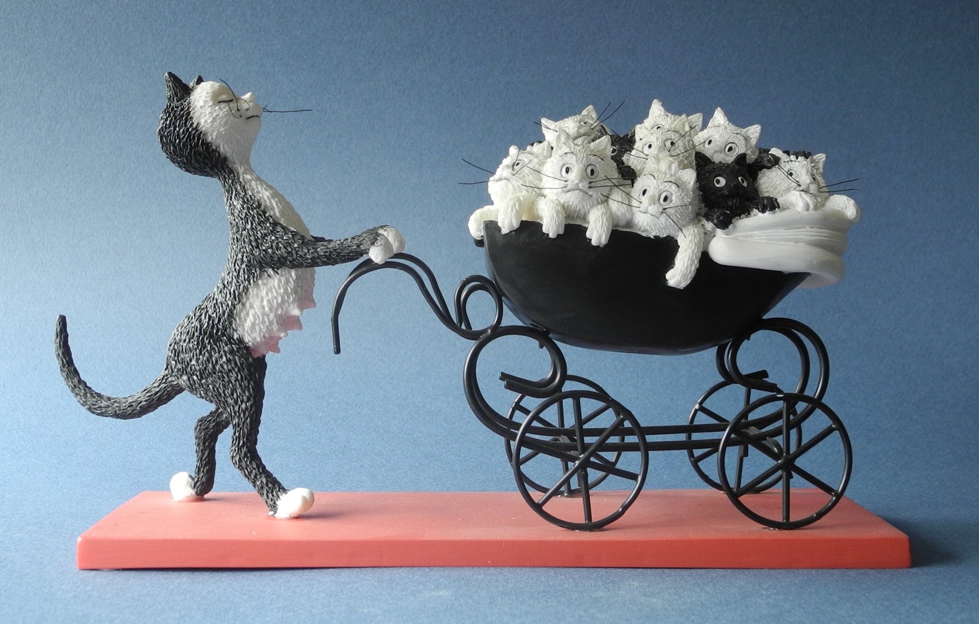 This statue is more than a decoration piece – it is a funny and recognizable work of art that perfectly captures the charm and curiosity of cats. Ideal as a gift for cat lovers or as a unique addition to your own interior, “Le Landau” brings a smile to any room.