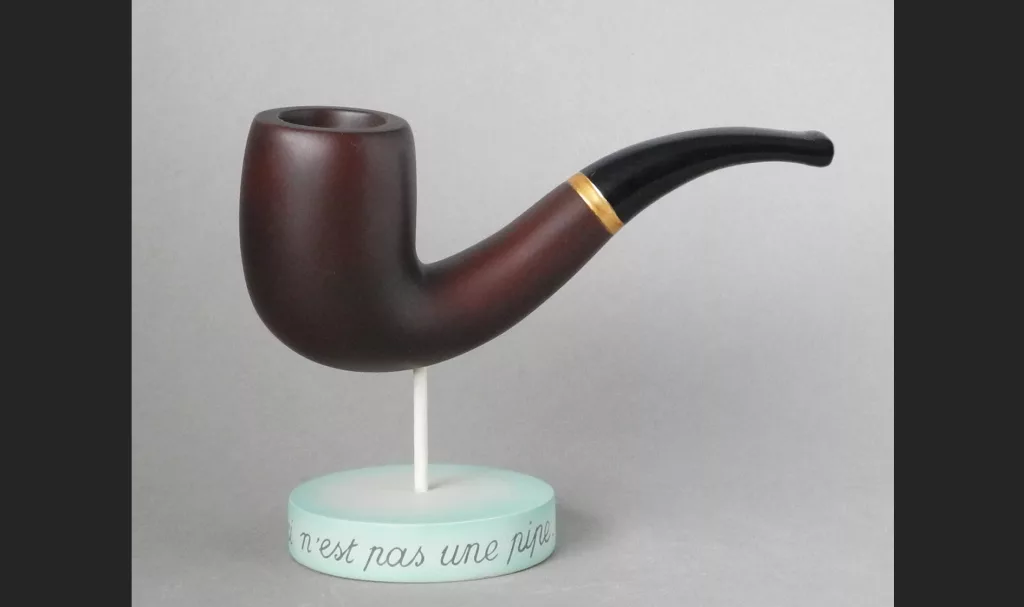 The iconic work reflects, in the style of an advertisement, the philosophical question of the mutual relationship between image, word and reality.