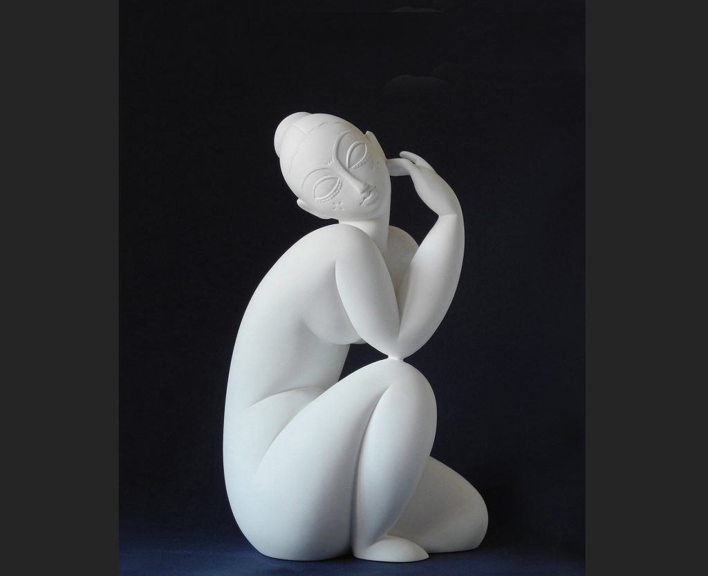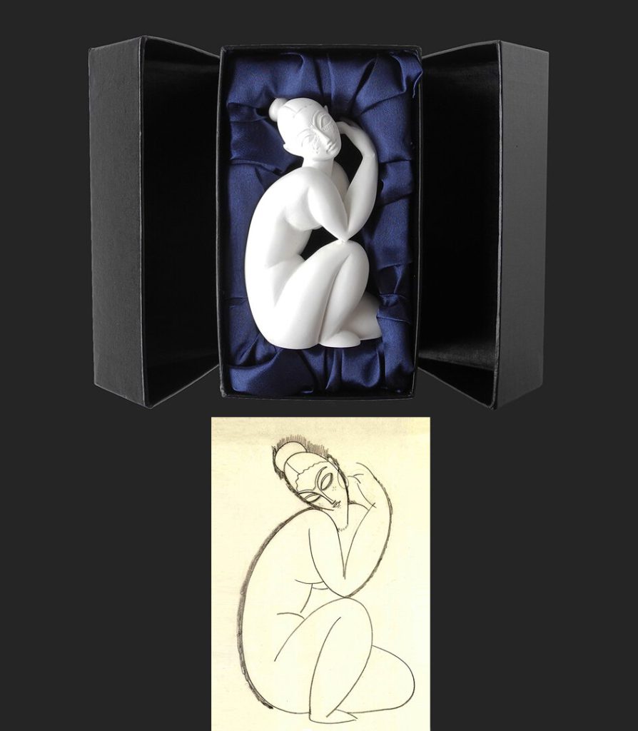 At an early age, Modigliani went to the marble quarries in Carrara to learn sculpting. Later he became fascinated by traditional sculptures from Africa and Oceania. These influences are immediately recognizable in this stone-carved head. It is an inward-looking portrait, where the perfect vertical lines determine the shape. It has a meditative and sacred appearance, and in that respect it fits in with Modigliani’s Hebrew background.