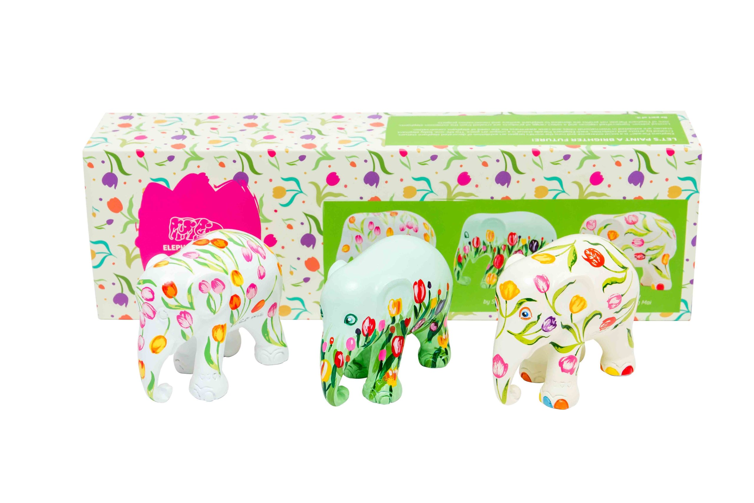Immerse yourself in a world of love and artistry with our Multipack Tulipa. This specially curated pack features three distinct small elephant figurines inspired by renowned artists creating a unique set of elephant figurine decor.