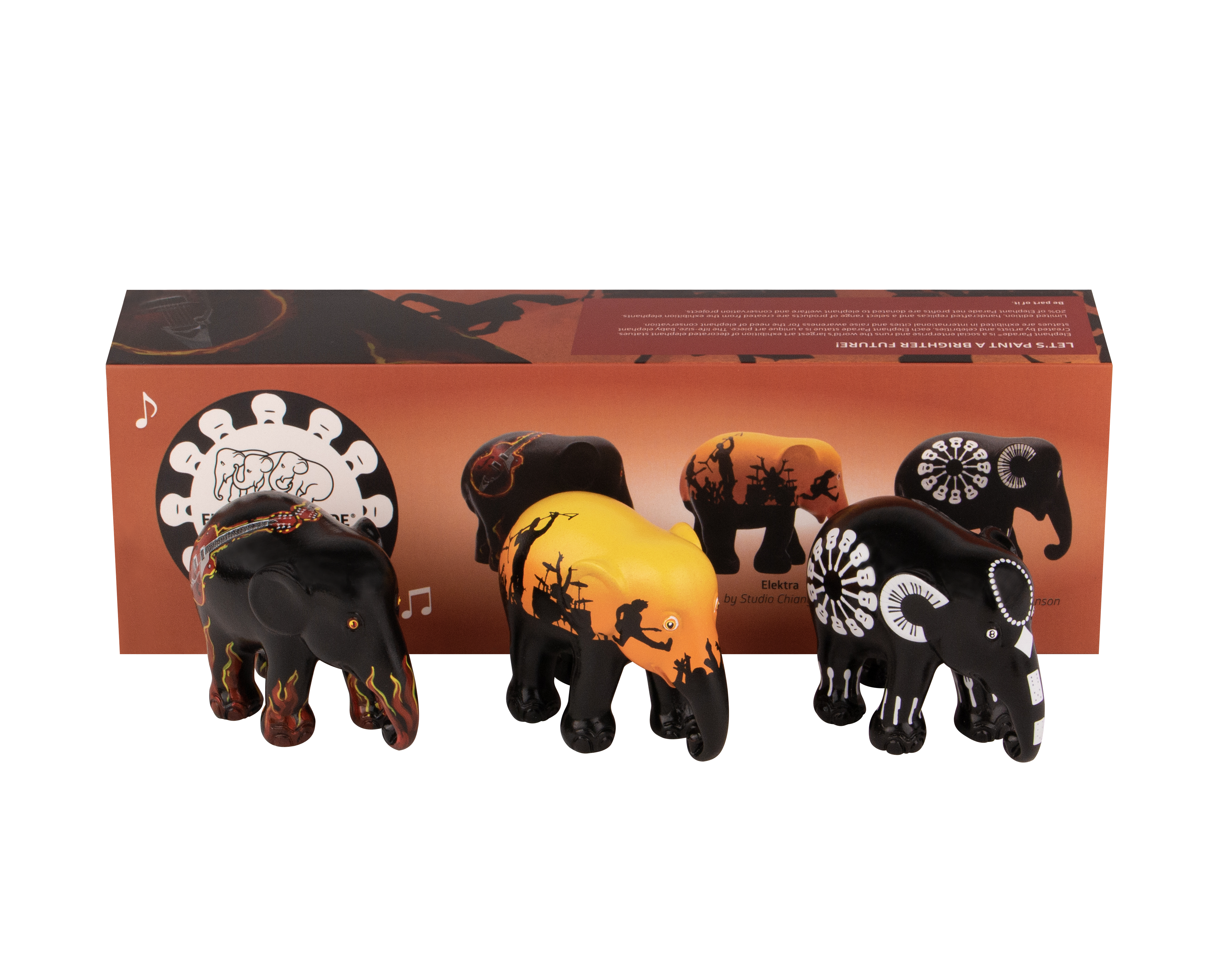 What’s better than one Elephant Parade elephant? Three! The Elephant Parade multipack comes with three 7 cm elephants, packed up in a lovely gift box. This pack features Shula by Studio Chiang Mai, Elektra by Studio Chiang Mai and Satao by Sir Richard Branson.