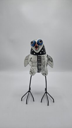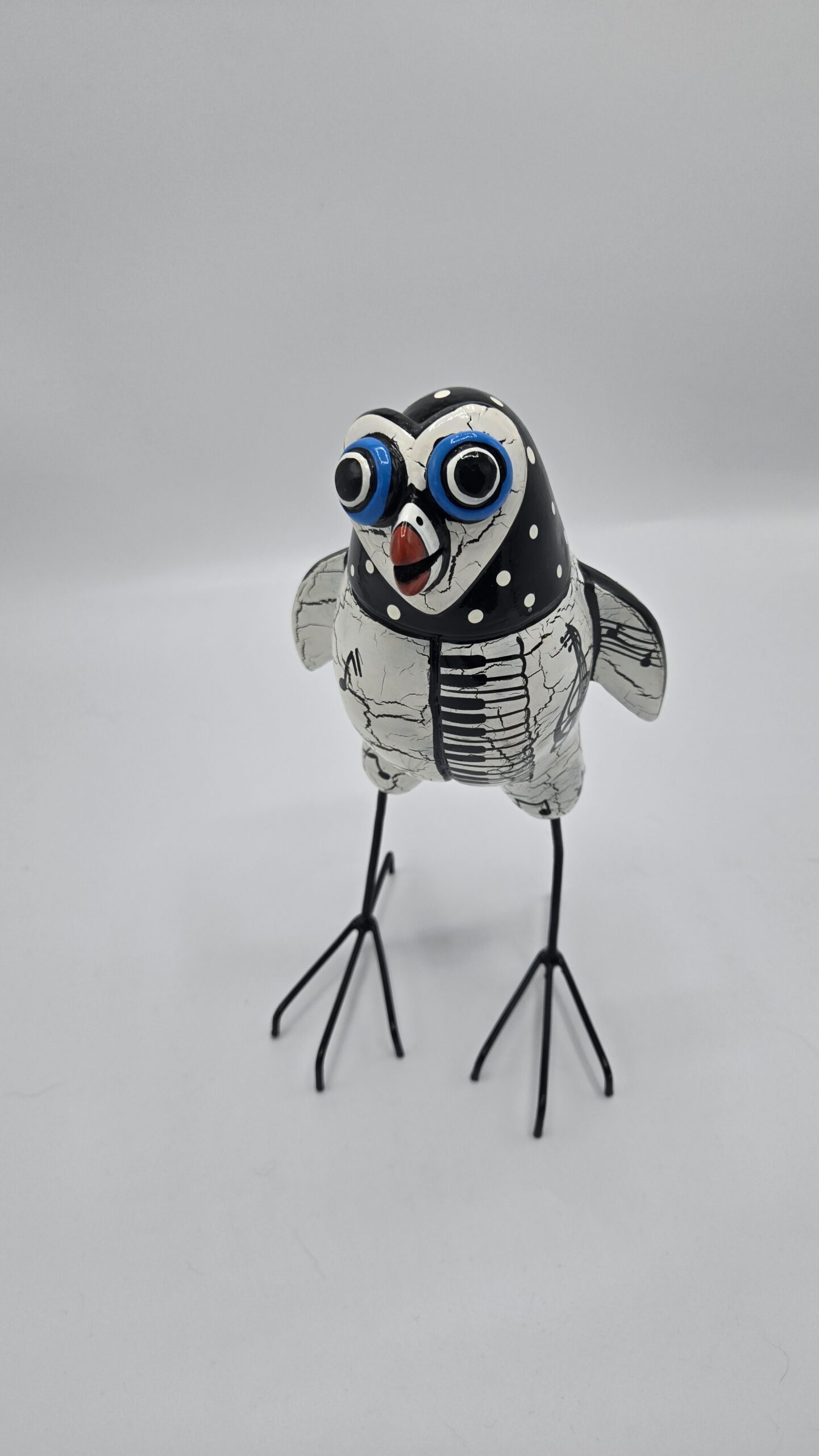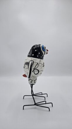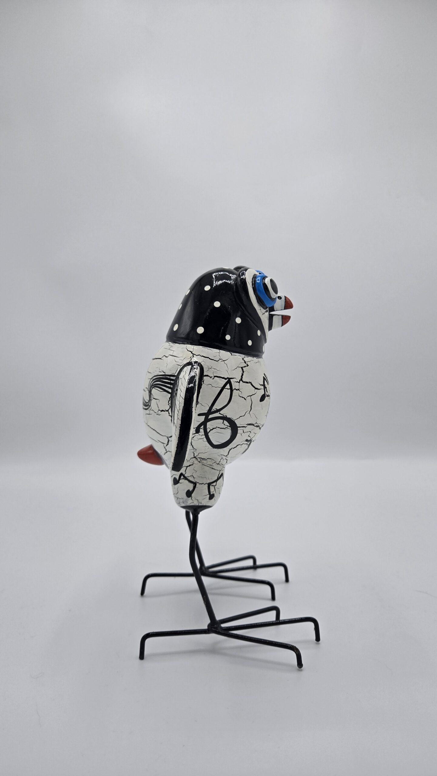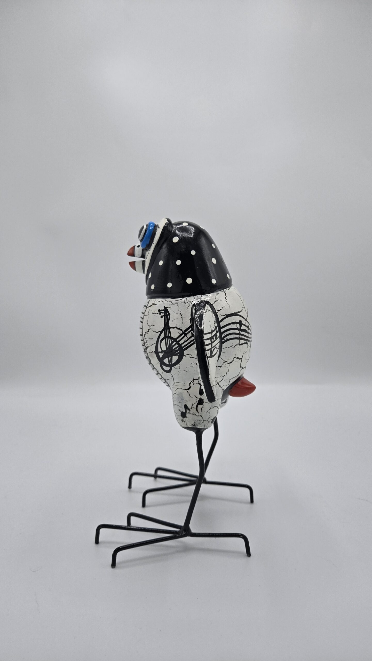 With large, inquisitive eyes and sturdy metal legs, this owl exudes character and humor. The rounded shapes, contrasting colors, and hand-painted details make this sculpture a true eye-catcher in any interior—perfect for music lovers, art collectors, or those who appreciate quirky decor.