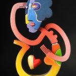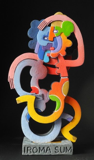 His work is vigorous, powerful, original and innovative. The confrontation between a sculpture or a canvas and Van Dommelen evokes a powerful sensation, fed by the paradoxical tension between an almost primitive language of shapes and clearly referring to age-old art forms conveyed in a dynamic, vibrating and very modern colour scheme.