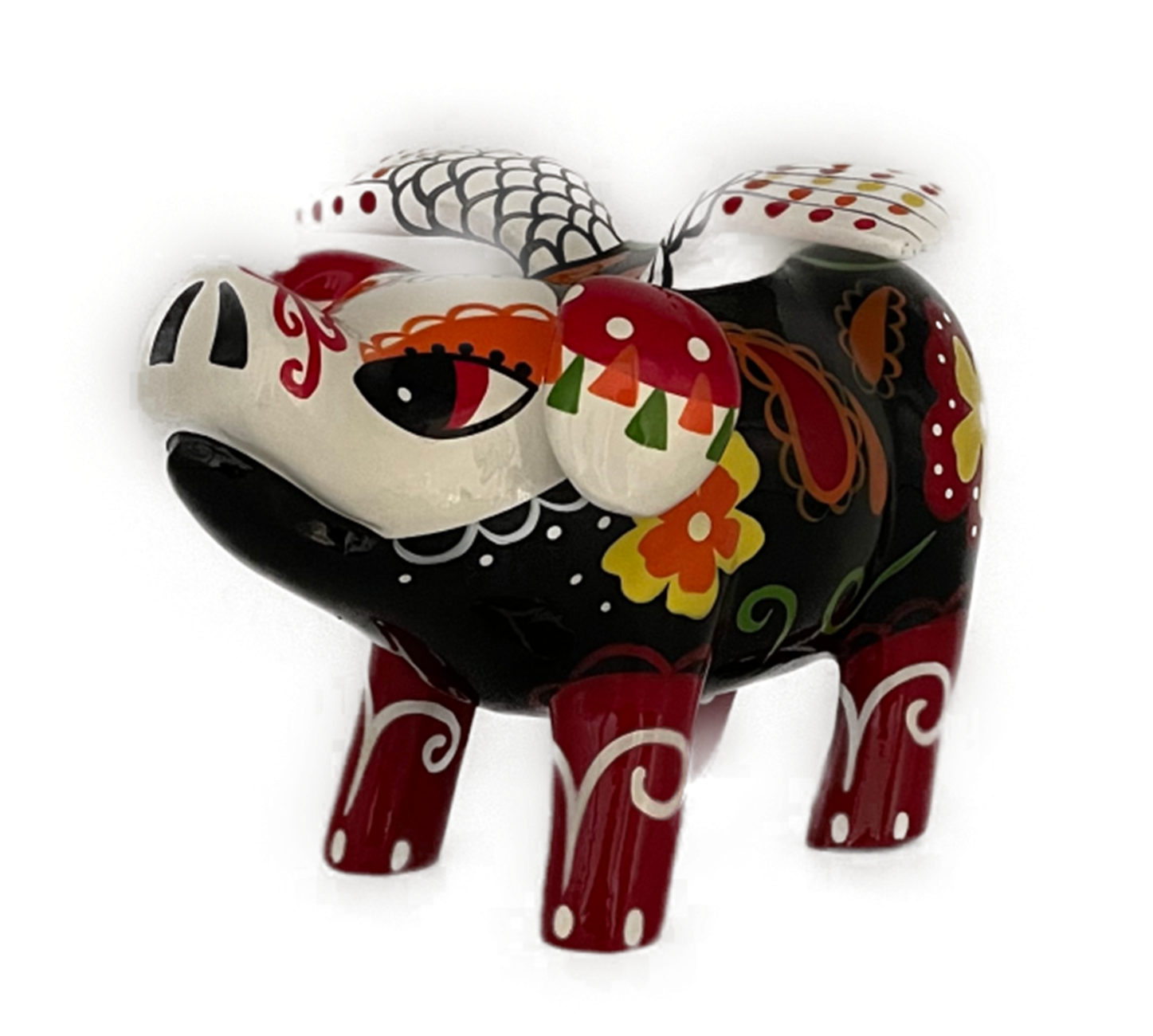 Pig Bob. Mexican Color. The statue is made of synthetic resin. It has a lot of cheerful colours. A nice and unique gift for friends or family.