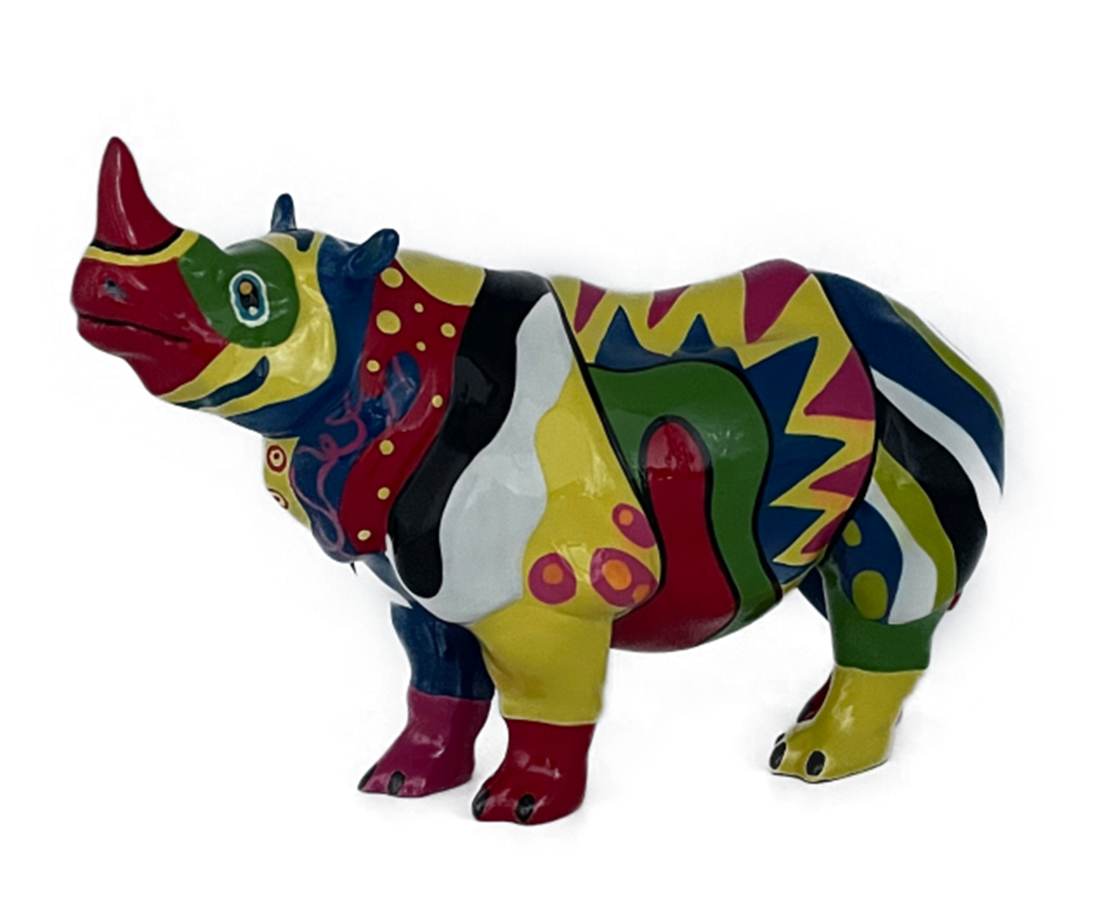 Rhino “Juan” Multicolor. The statue is made of synthetic resin. It has a lot of cheerful colours. A nice and unique gift for friends or family.