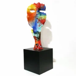 At 26 cm tall and with a compact base of 8 cm x 10 cm, this artwork is ideal for prominent placement on a table, shelf, or sideboard. The sleek design and vibrant colors add an artistic touch to your interior.