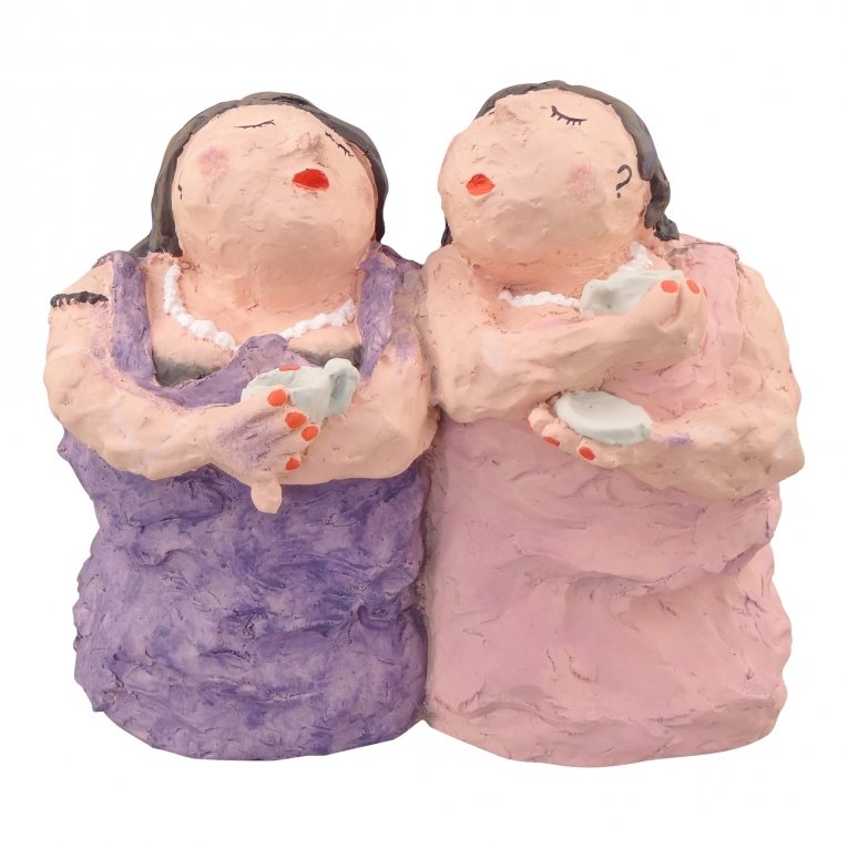 Art objects made by Gerdine Duijsens. This is a series of Tea Ladies objects with the name ‘Entre Nous’ in her customary colours. The Tea Ladies are made of high-quality synthetic resin and have a size of 21 x 26 x 17 cm. The art objects are signed and numbered. The edition contains 200 pieces per colour. The art objects are packed in a trendy black package and can serve as an ideal gift.