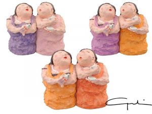 Art objects made by Gerdine Duijsens. This is a series of Tea Ladies objects with the name ‘Entre Nous’ in her customary colours. The Tea Ladies are made of high-quality synthetic resin and have a size of 21 x 26 x 17 cm. The art objects are signed and numbered. The edition contains 200 pieces per colour. The art objects are packed in a trendy black package and can serve as an ideal gift.