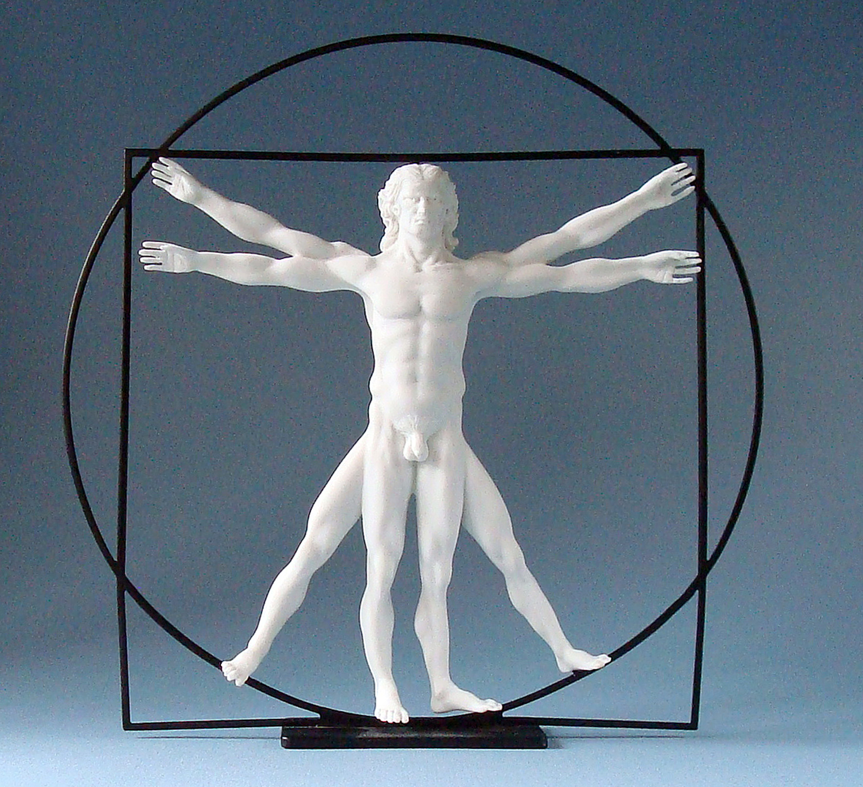 Da Vinci tended to compensate for his lack of an education in the classical sense with an excess of empirical studies. The most famous of these is the Vitruvian Man so called because it is based on a description of the ideal human proportions by Roman architect Vitruvius (around 85-20 BC).