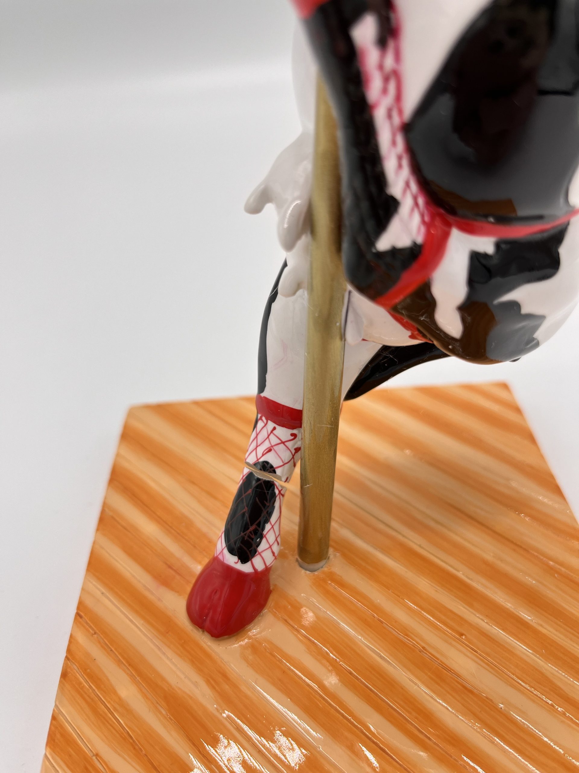 Unfortunately, this cow is no longer attached to the pedestal and is therefore missing part of her foot.